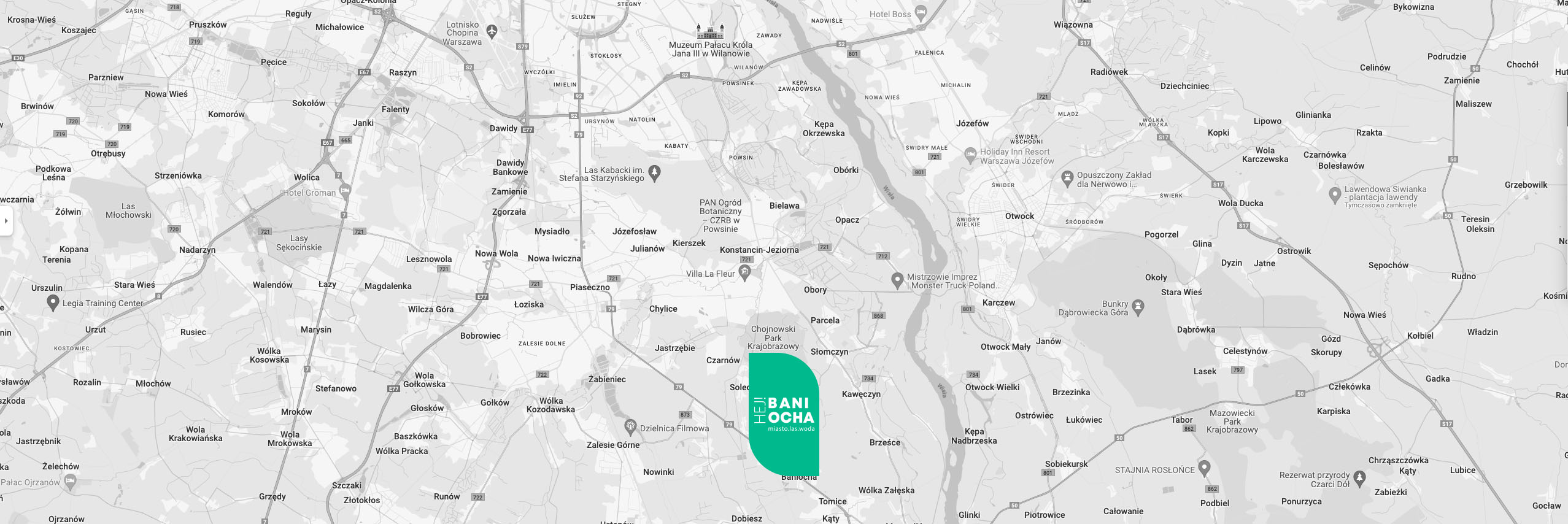 Baniocha to prężnie rozwijająca się miejscowość, usytuowana niedaleko Warszawy, pomiędzy Konstancinem-Jeziorną, Piasecznem a Górą Kalwarią, co sprawia, że jest atrakcyjnym miejscem dla osób poszukujących spokoju i bliskości natury przy zachowaniu dogodnego dostępu do miejskich udogodnień. Otoczona lasami i malowniczymi stawami, Baniocha oferuje mieszkańcom możliwość obcowania z przyrodą, jednocześnie zapewniając szybki dojazd do stolicy.